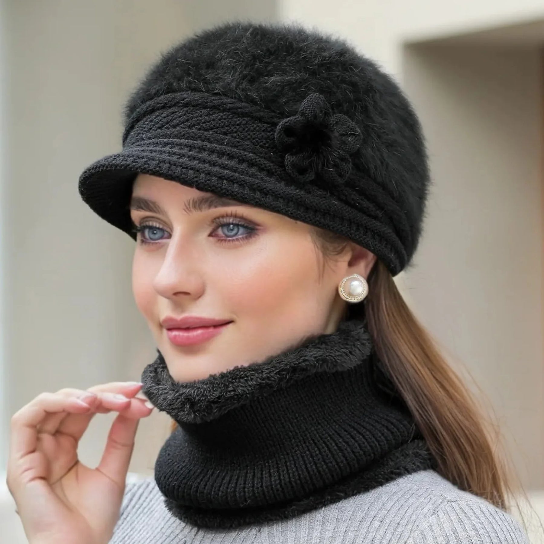 Chloe - Plush Fur Lined Hat & Scarf Warm Set