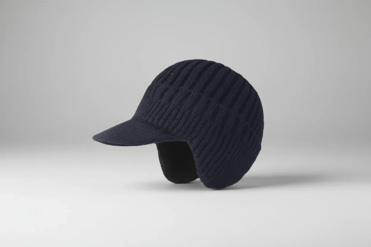 Knit Visor Design – Combines a classic knit cap structure with a front brim for added coverage.